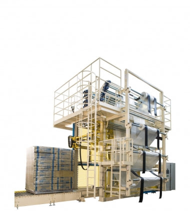 De CSH2K Max rekhoesmachine (zakmachine) past buisvormige rekfolies van 25-180 micron toe op de meeste ladingen. De hoes wordt van een spoel getrokken, uitgerekt en op het product aangebracht. Wanneer de folie wordt losgelaten, herstelt deze zich op natuurlijke wijze en wordt de verpakking strakker om stabiliteit en bescherming tegen stof en water te bieden, indien nodig met een bedrukt logo.