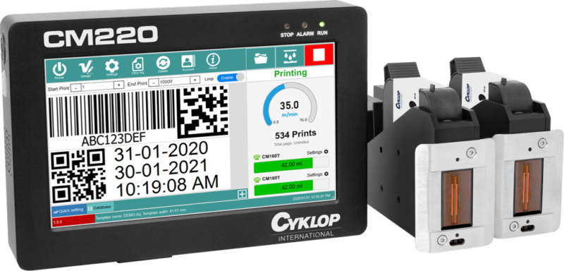 CM 160 T 打印头的数据打印高度可达 25.4 毫米。这样可以在单个墨盒中进行更多打印。数据是在平稳的运动中创建的,因此不会发生错误。此外,还可以打印大而清晰的黑色和彩色文本。